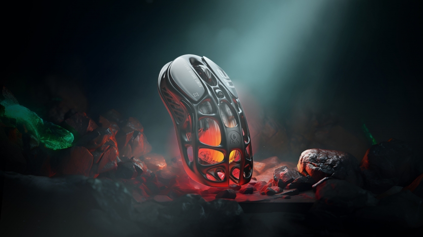 Премиальная мышь с магниевым корпусом и скелетованным дизайном для легкой и надежной игры. Оснащена сенсором PAW3395 (26 000 DPI), поддерживает частоту опроса до 4000 Гц (с отдельным ресивером). Имеет три типа подключения (проводное, Bluetooth, 2.4 ГГц) и настраиваемую RGB-подсветку.